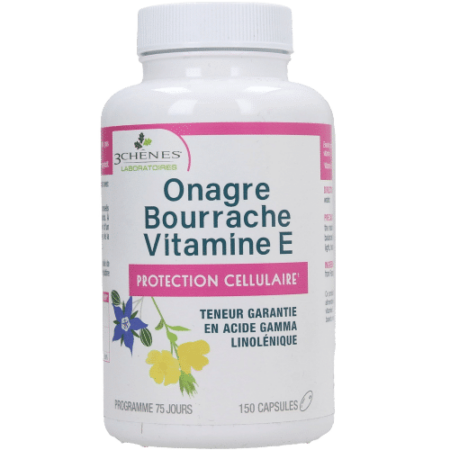 3 CHENES Onagre Bourrache Vitamine E 150 Capsules