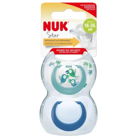 NUK Sucette en Silicone 18 à 36 mois – 2 pièces (Turquoise/Bleu)