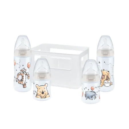 NUK Kit Disney Winnie l’Ourson Boîte avec 4 Biberons + Contrôle Température Age 0 à 6 mois