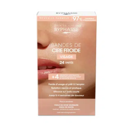 Byphasse Bandes Cire Froide Visage et Zones Délicates Peaux Sensibles (24 bandes + 4 lingettes)