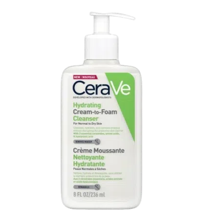 CeraVe – Crème Moussante Nettoyante Hydratante Visage pour les Peaux Normales à Sèches 236ml