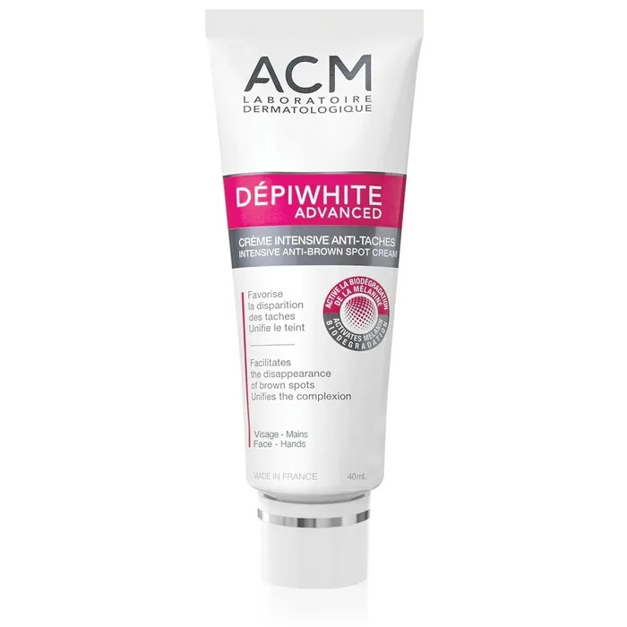 La crème intensive Anti-Taches Dépiwhite Advanced d’ACM aide à réduire visiblement les taches et les marques.