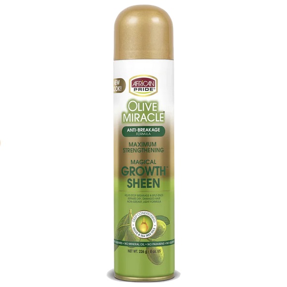 La brillantine African Pride Olive Miracle Growth Sheen aide à restaurer la beauté naturelle des cheveux et augmente leur brillance.