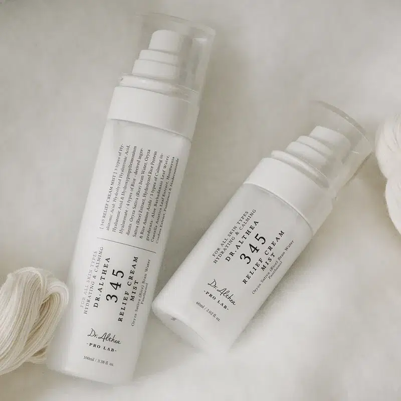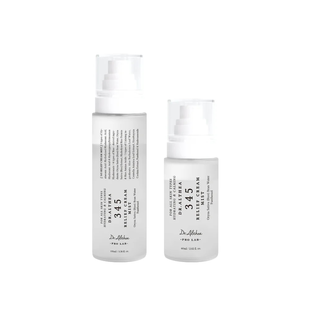 Dites YES à une peau éclatante en un seul spray ! La brume crème 345 Relief du Dr. Althea associe une phase crème enrichie d’eau de son de riz nourrissante, d’acide hyaluronique et de panthénol, et une phase essence hydratante concentrée en madécassoside apaisant, eau de feuille d’aloe vera et extrait de centella. Agitez simplement pour mélanger les deux phases, puis vaporisez cette brume légère pour un effet rafraîchissant instantané.