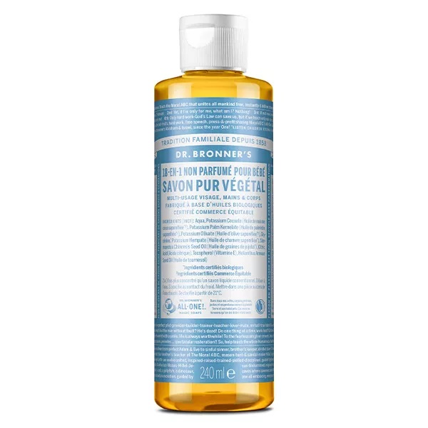 Voir le guide des 18 utilisations des produits du Dr Bonner’s pour découvrir tous les bienfaits du produit.