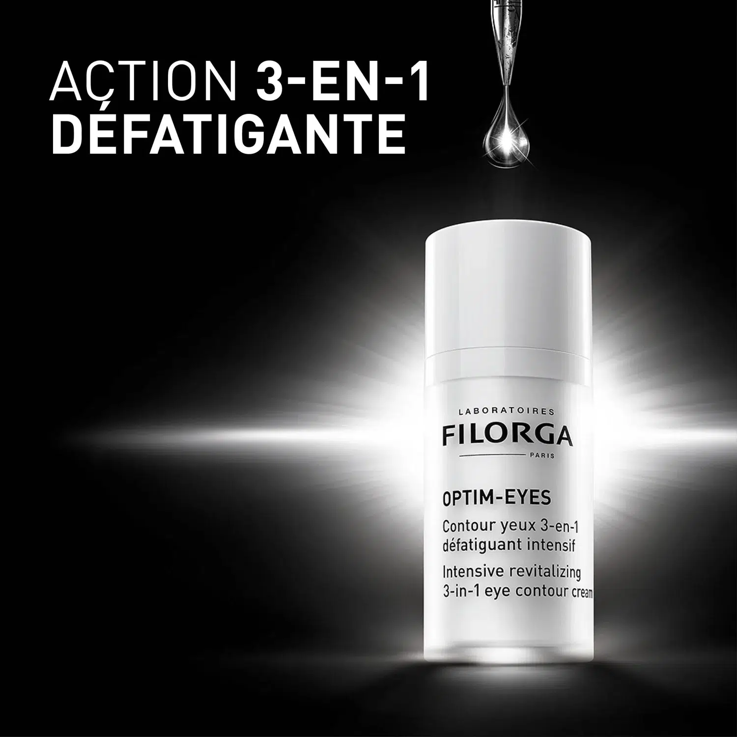 - Action correctrice intensive (cernes, poches, ridules) : La technologie Eye-Impact réunit de la chrysine pour lutter contre les cernes colorés, des peptides tonifiants pour diminuer le volume des poches et de l’acide hyaluronique repulpant pour lisser et hydrater.