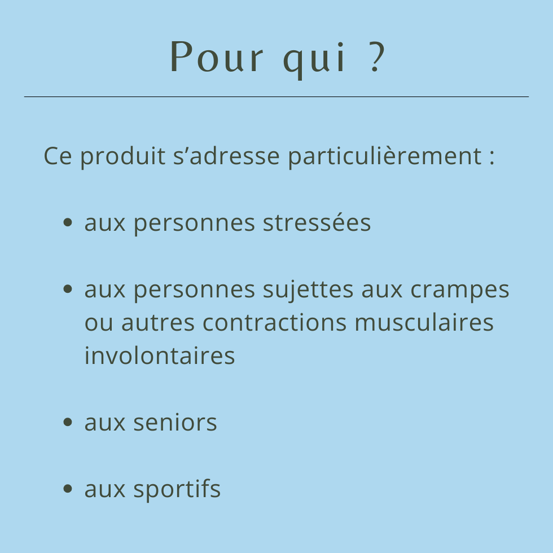 • en cas de crampes récurrentes pour favoriser la décontraction musculaire ;