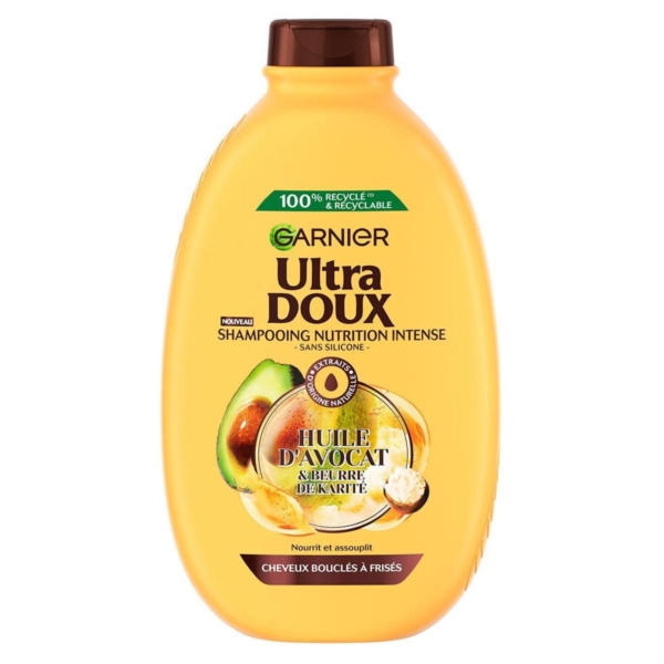 Véritable recette de nutrition intense pour les cheveux très secs ou frisés, le shampooing Garnier Ultra DOUX associe l’Huile d’Avocat reconnue pour ses propriétés assouplissantes au Beurre de Karité, issu d’un commerce équitable, réputé pour ses vertus hautement nutritives, dans une texture crémeuse et onctueuse qui n’alourdit pas vos cheveux.