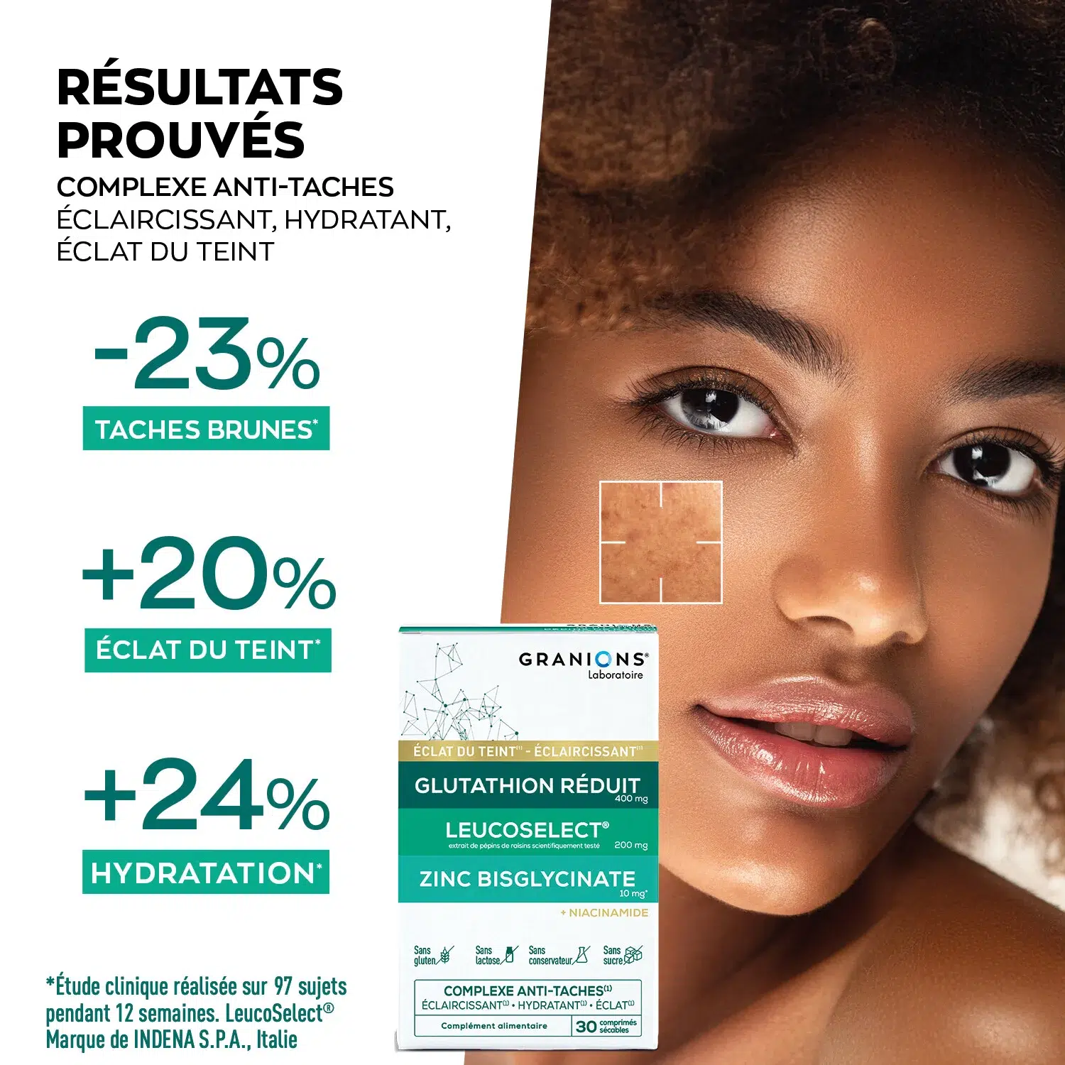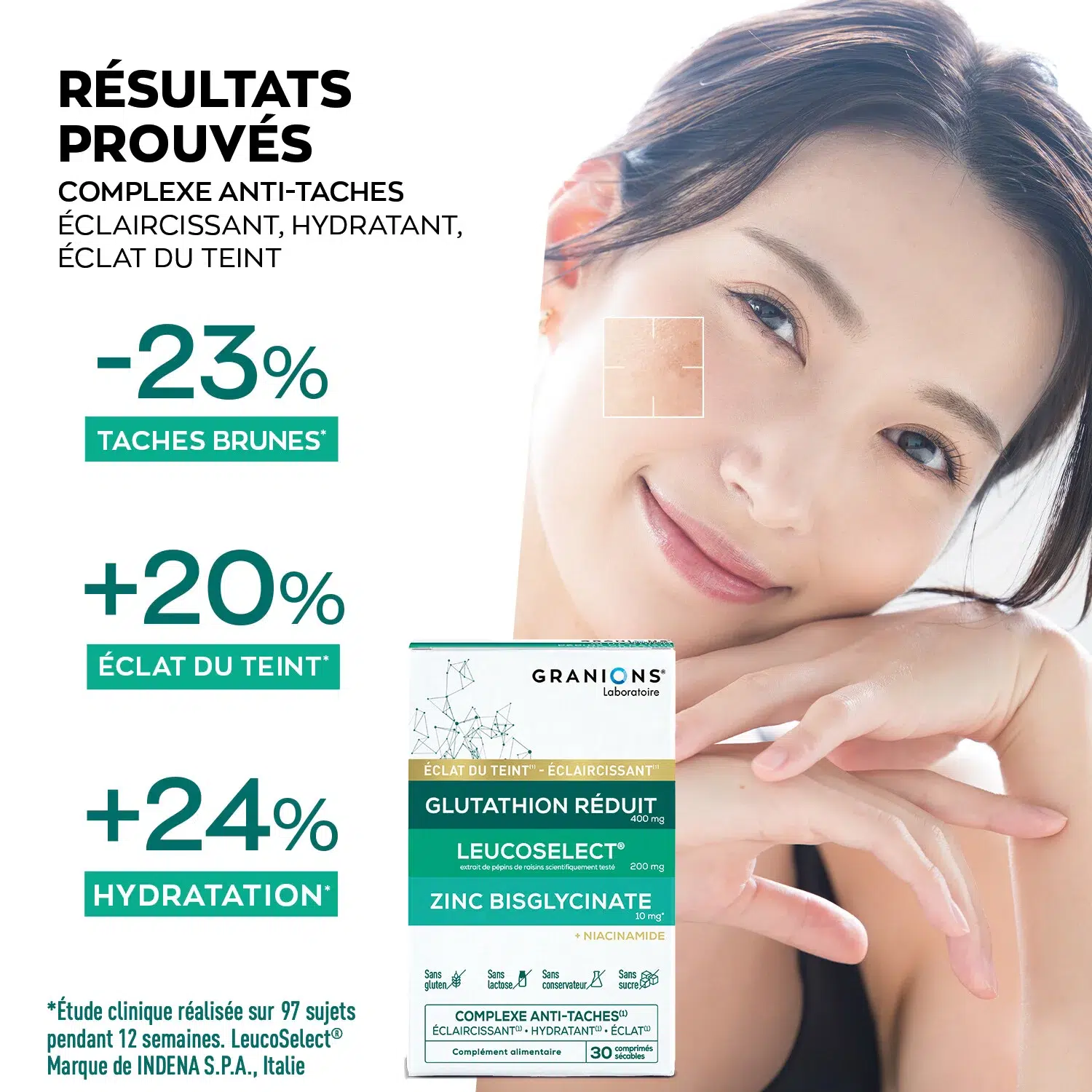 L’efficacité du Complexe Anti-Taches Granions® est scientifiquement prouvée grâce à des tests sur l’actif Leucoselect® :