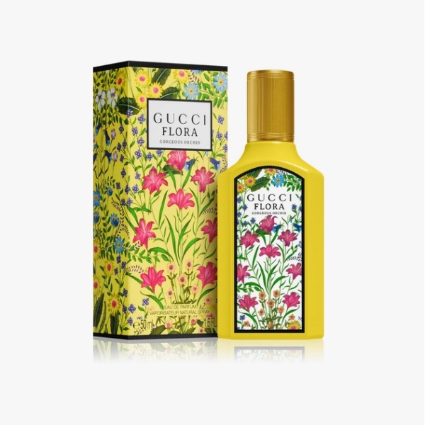 Le flacon de Flora Gorgeous Orchid de Gucci symbolise la joie et l’élégance. Ses tons jaunes symbolisent l’énergie et la positivité tandis que le design floral de l’étiquette reflète l’esprit créatif et artistique de la marque Gucci.