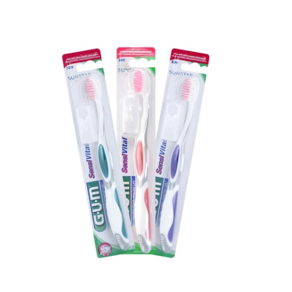 La gamme GUM SensiVital aide à prévenir et à soulager les personnes souffrant de sensibilité dentaire. Notre brosse à dents GUM SensiVital ultra-souple est très douce en bouche, ce qui en fait un choix particulièrement adapté pour toute personne souffrant de dents sensibles. Elle a été spécifiquement conçue pour cibler la plaque sous tous les angles, laissant vos dents parfaitement propres.