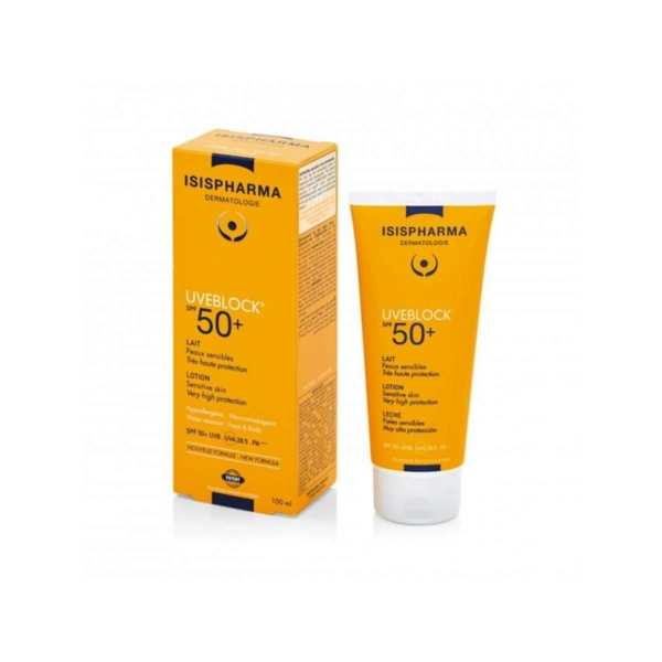 Isispharma Uveblock Lait SPF50+ 100 ml offre une très haute protection solaire.