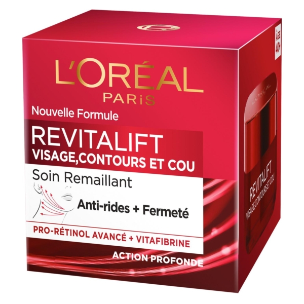 Le Soin Remaillant Visage Contour et Cou Revitalift agit profondément pour réduire les rides et raffermir la peau.