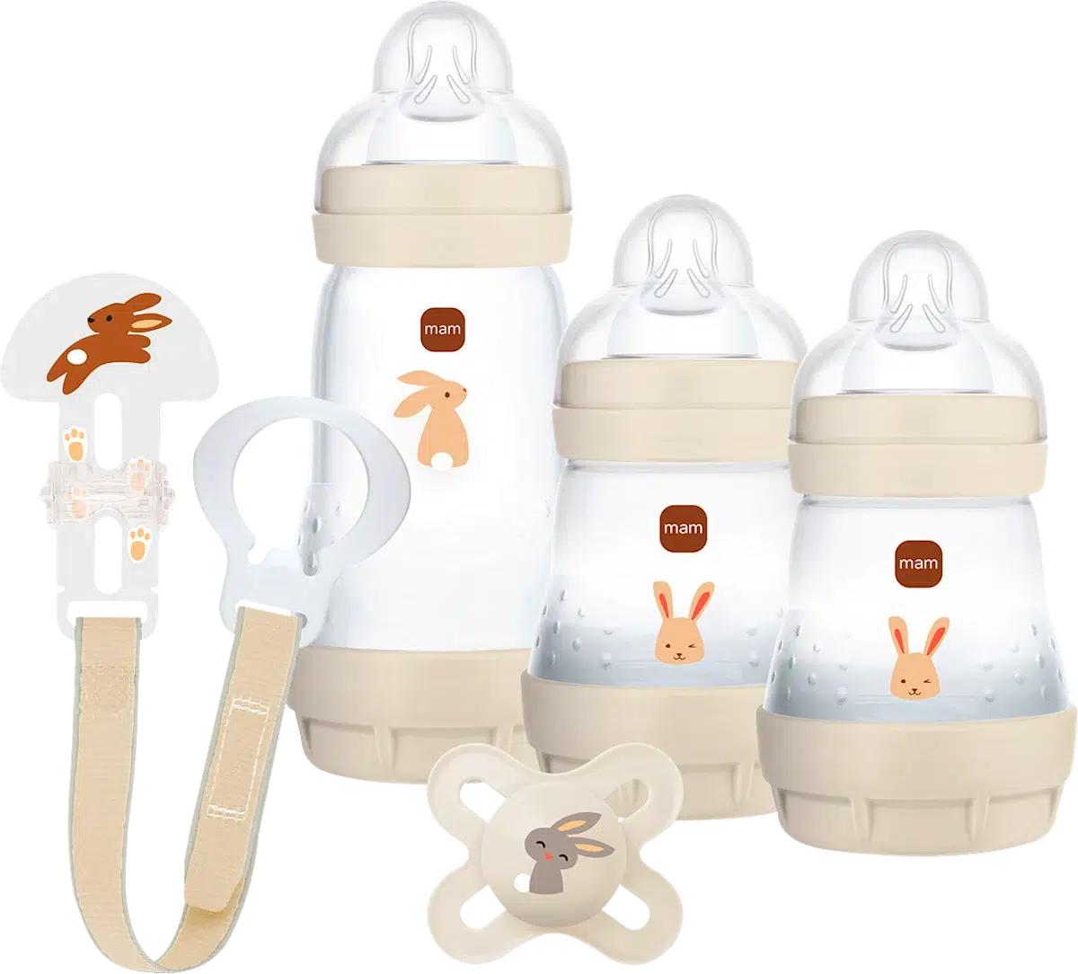 Instructions de rangement : Biberon anti-coliques Easy Start™ : Ne laissez pas les pièces dans une solution nettoyante (par exemple, de l’eau savonneuse) plus longtemps que recommandé – cela pourrait altérer le fonctionnement du produit. Ne laissez pas les pièces (y compris la tétine) dans la solution stérilisante plus longtemps que recommandé, et ne les exposez pas à la lumière directe du soleil ni à la chaleur – cela pourrait altérer le fonctionnement du produit ou de la tétine. Rangez toujours le biberon entièrement assemblé. Rangez toujours le biberon au sec. Rangez les tétines et les valves dans un récipient sec et hermétique. Gardez toutes les pièces non utilisées hors de portée des enfants. Sucette MAM : N’exposez pas la sucette à la lumière directe du soleil ni à la chaleur, et ne la laissez jamais dans des solutions désinfectantes plus longtemps que recommandé, car cela pourrait endommager la tétine. Attache MAM : L’attache doit toujours être rangée et nettoyée en position ouverte afin de maintenir la tension du ressort. Ne la rangez pas en position fermée. Veuillez conserver ces instructions pour référence ultérieure.