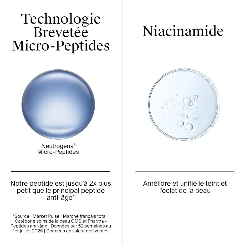 Aqua, glycérine, niacinamide, diméthicone, farine de noyau d’avoine (Avena sativa), olivate de cétéaryle, polyacrylamide, olivate de sorbitan, polyacrylate de sodium, caprylyl glycol, dilaurate de glycéryle, stéareth-10, isoparaffine C13-14, chlorphénésine, diméthiconol, polymère croisé de diméthicone, laureth-7, acide citrique, extrait de fruit de Vaccinium macrocarpon, 1,2-hexanediol, acétyl dipeptide-31 amide, collagène hydrolysé