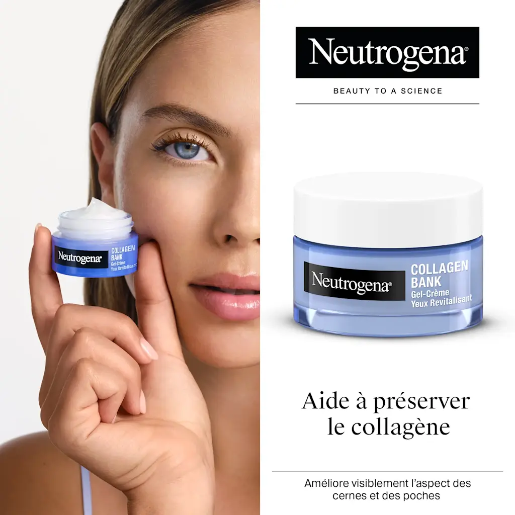 La crème contour des yeux Collagen Bank de Neutrogena est spécialement formulée pour soutenir la structure du collagène de la peau et atténuer les signes visibles du vieillissement. Grâce à la technologie des micro-peptides, l’absorption optimale des actifs est assurée.