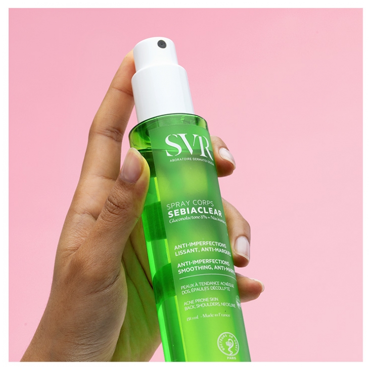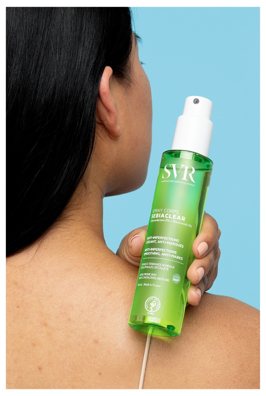 Formulé pour corriger toutes les imperfections du dos, des épaules et du décolleté. Sebiaclear Spray Corps, c’est -40% de boutons dès 2 semaines !