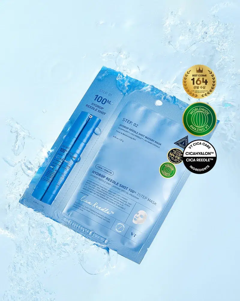 Boostez l’hydratation de votre peau avec ce masque 2 étapes. La première étape est un traitement par microneedling avec Hydrop Reedle Shot, qui contient l’ingrédient exclusif de VT, CICAHYALON™ et CICA REEDLE™, pour délivrer des ingrédients actifs à faible poids moléculaire en profondeur dans la peau. Poursuivre en appliquant le masque hydrogel Aqua (étape 2 du pack de masques) qui contient des ingrédients hydratants tels que l’acide hyaluronique, l’ectoïne et le glucoside de glycéryle.